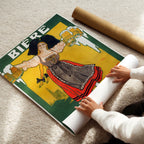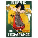Originally created to promote the renowned 'Brewery of Hope' (Maison Fondée en 1746) from the picturesque Alsace region of France, this captivating artwork features a cheerful woman in traditional attire, brimming with frothy beer mugs.