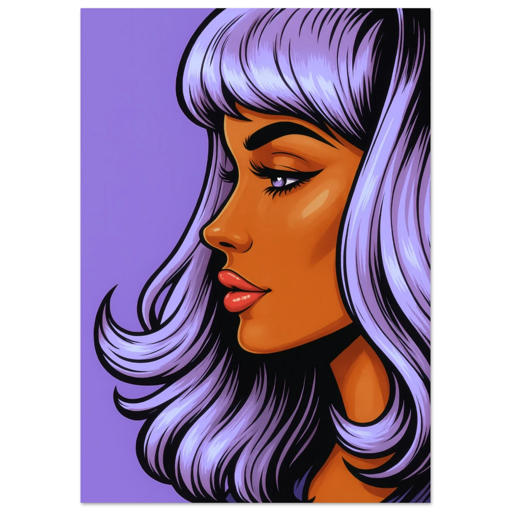 Purple hair and violet eyes, staring with a tiny heart sparkling in her gaze. When love strikes, hearts start showing up.